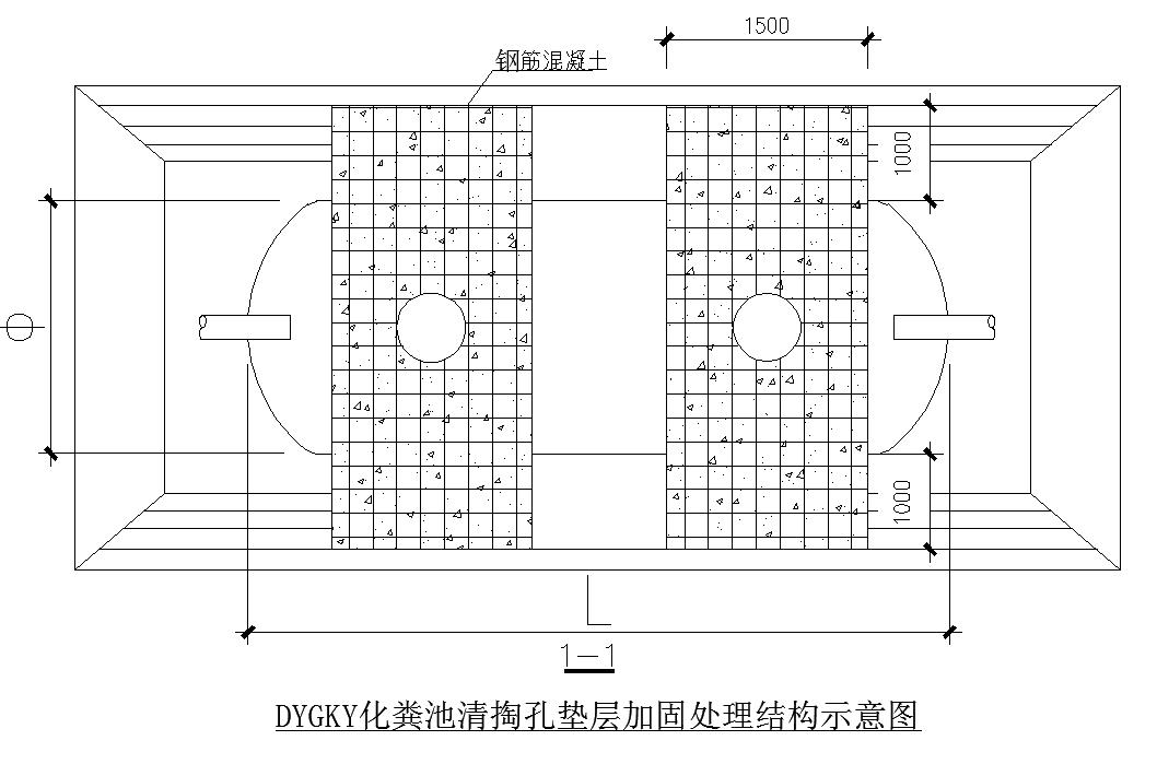 磚砌或混凝土檢查井不得直接接觸罐體要在罐體頂部墊沙300 mm左右并做水泥基礎,并按下圖示意扎鋼網(wǎng)(1500mm+大于罐體直徑外側(cè)各1米)混凝土基礎處理后再砌筑井筒。